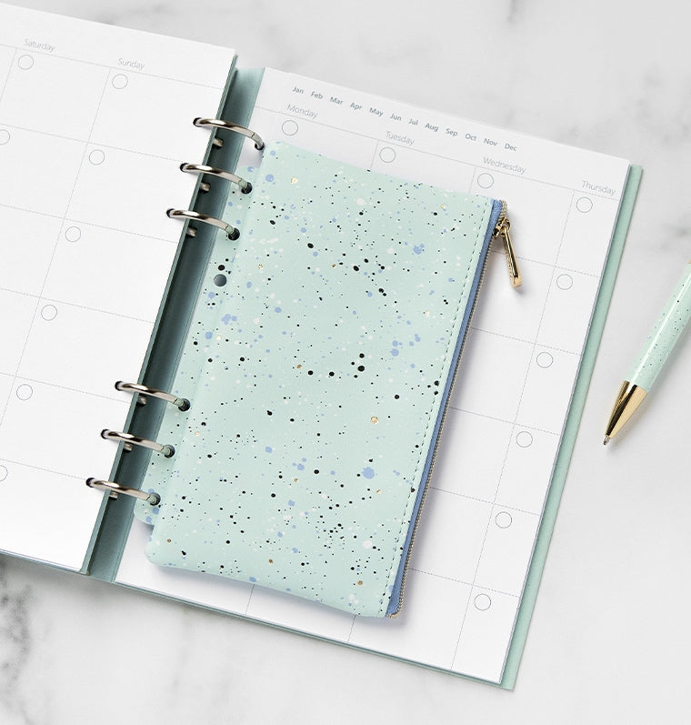 Découvrez votre nouvelle poche préféré de notre collection Confetti. Cette pochette zippée à motifs amusante dans les couleurs Mint, Blanc, Sky, Rose et Violet est parfaite pour transporter vos stylos, crayons et accessoires de planification et a été conçue pour s'adapter à votre Organiseur et Clipbook Filofax A5 ou Personal.