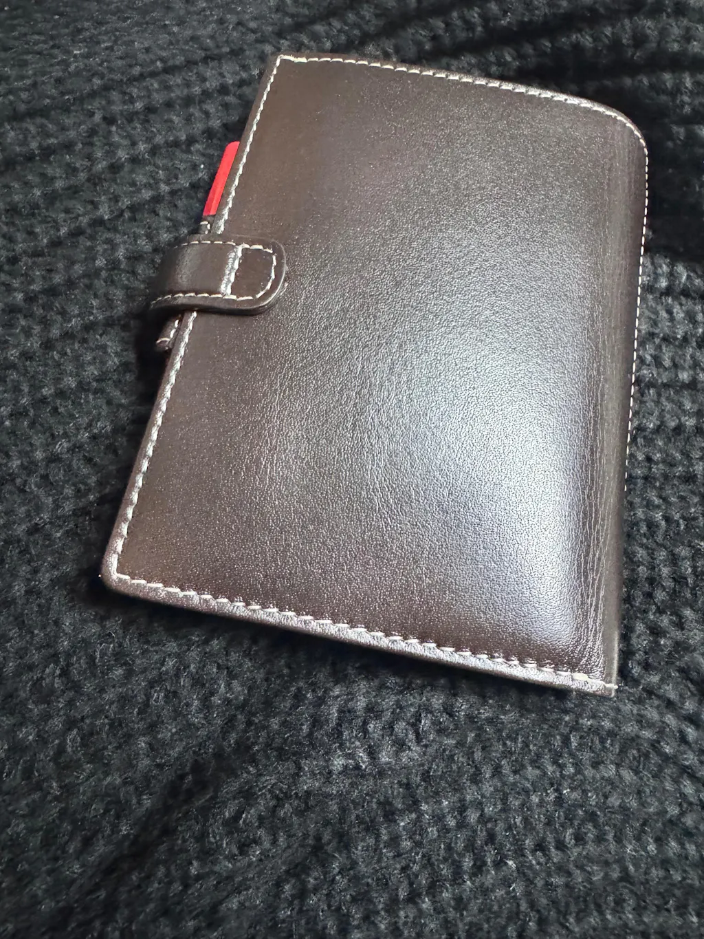 Linke Innenseite: drei Kreditkartenfächer und ein zusätzliches Einschubfach mit geschwungenem Abschluss sowie zwei vertikal angelegte Zusatzfächer über die gesamte Höhe